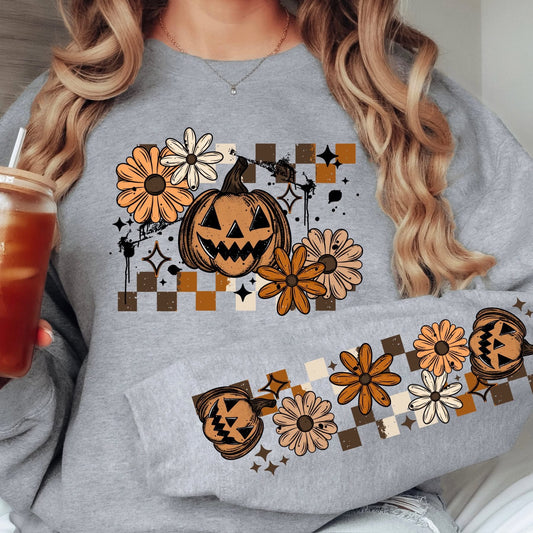 Fall Jack-o-lantern sweatsirt w/ sleeve designs