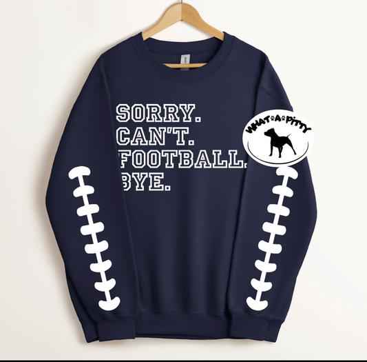 Sorry.Can't.Football.Bye sweatshirt with sleeve designs