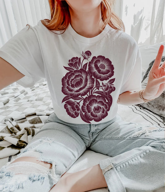 SaleMaroon Peonies tee
