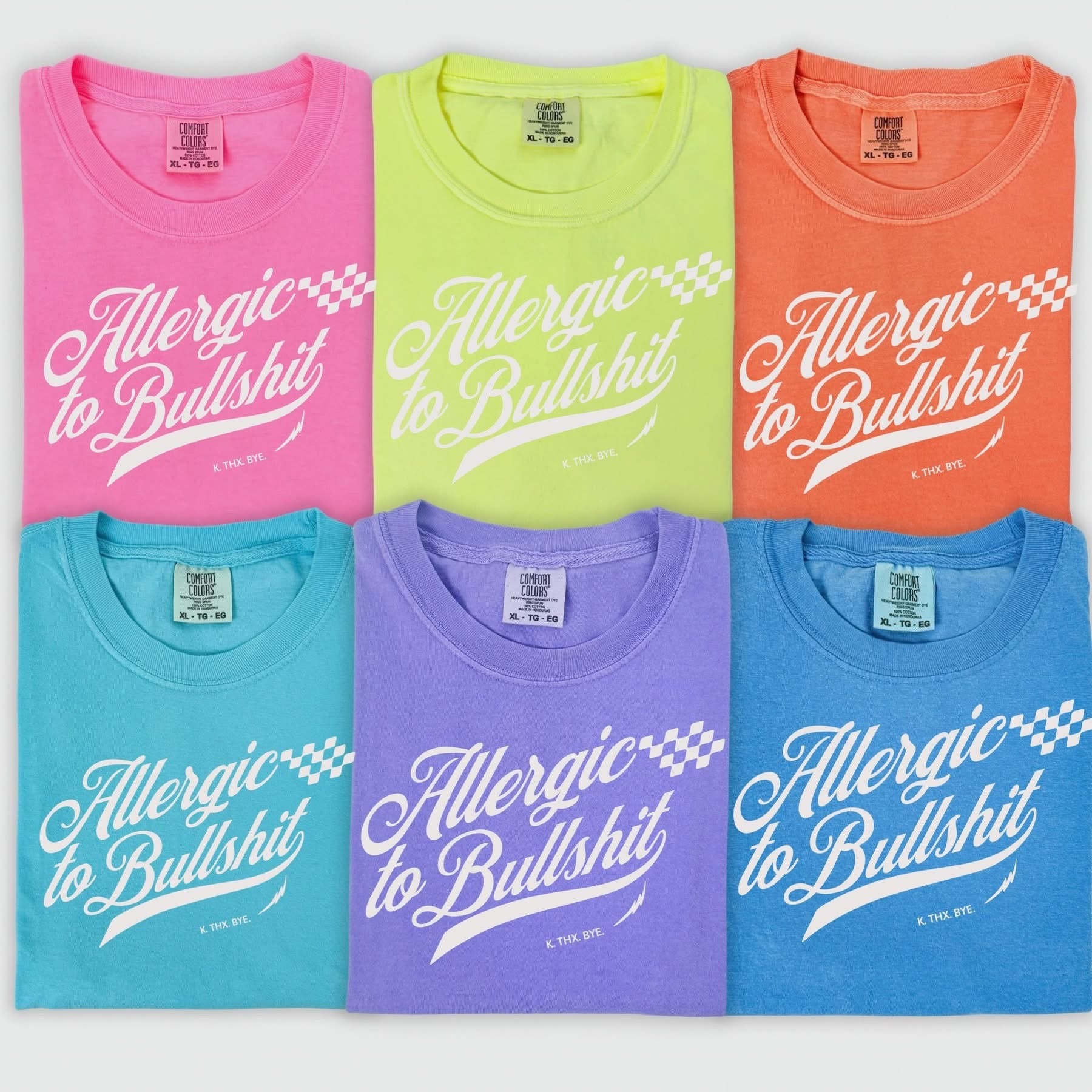 Show off your witty side with the Allergic to Bullshit tee, printed in crisp white ink on a soft, flattering fit. Perfect for keeping things real and making a statement without saying a word. Stay comfy while letting everyone know you’ve got zero tolerance for nonsense!