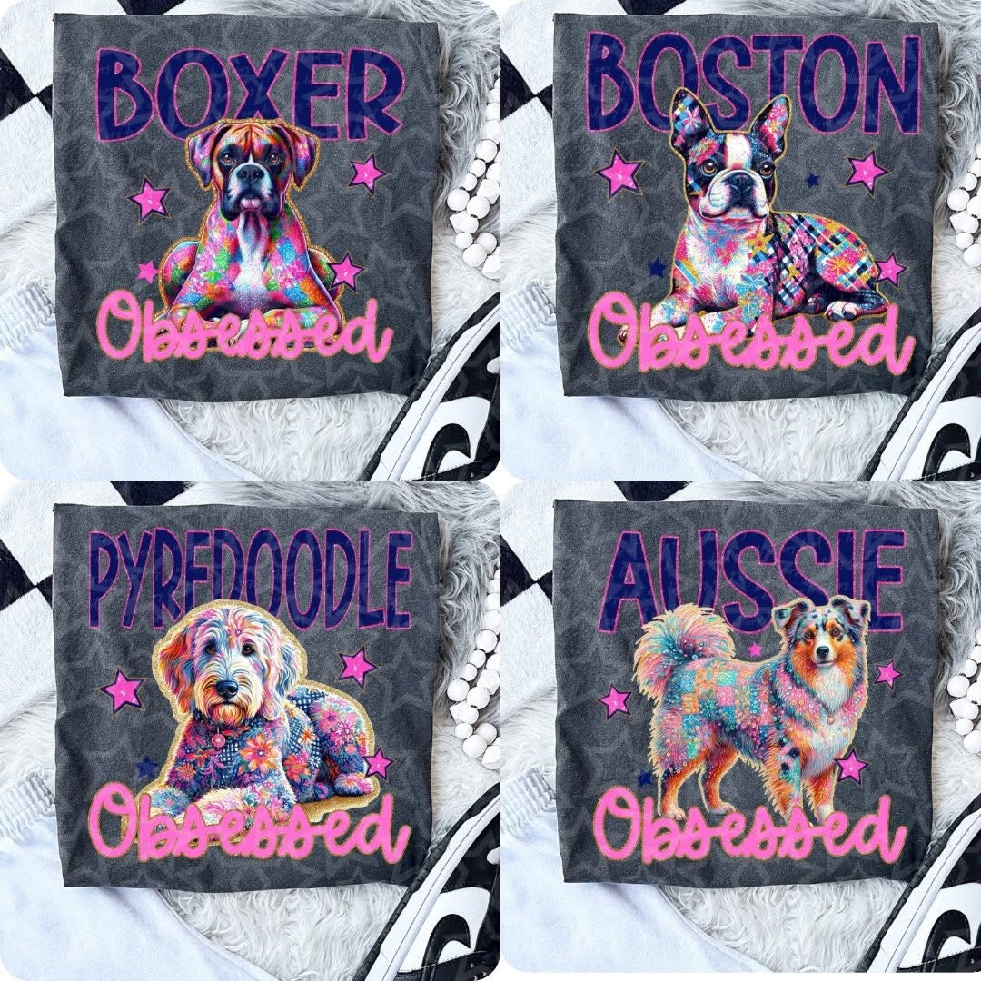 Express your canine devotion with our vibrant Dog Obsessed tee! Choose from 26 different dog breeds, each artistically rendered in eye-catching colors. Perfect for showing off your favorite furry friend while turning heads while you're out. These playful tees are a must-have for anyone whose heart belongs to their four-legged companion!