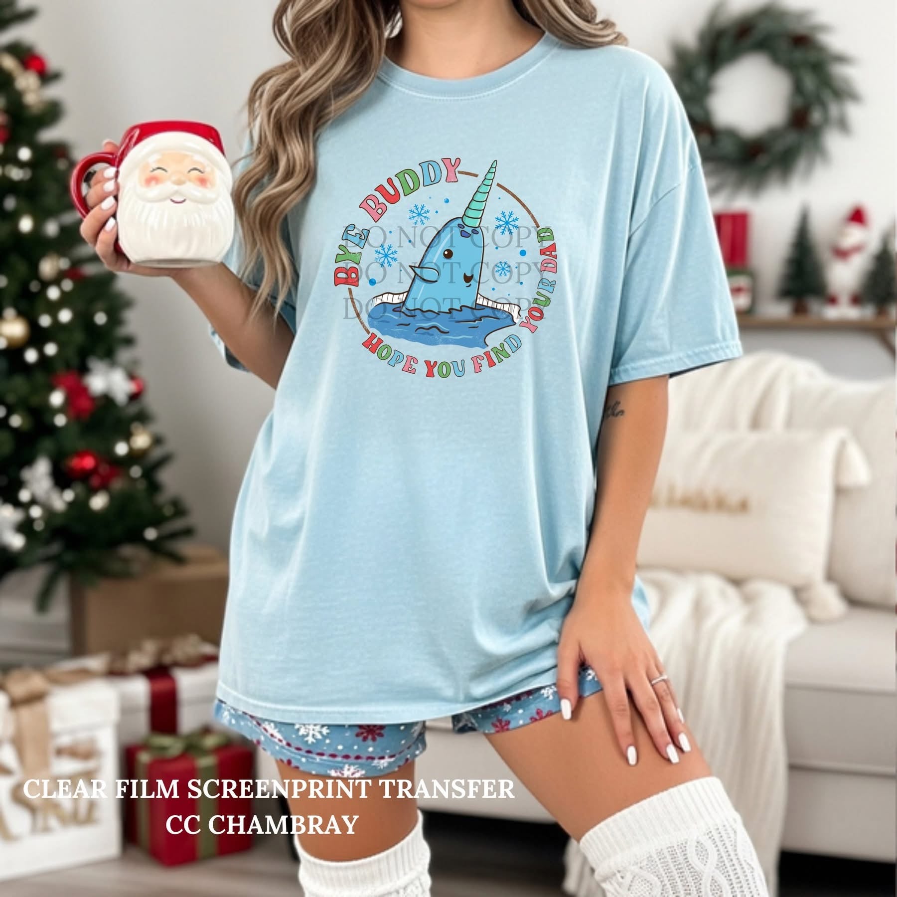 Celebrate the holidays with a playful twist on a classic favorite. This colorful narwhal tee features the cheerful message "Hope you find your Dad"—perfect for Christmas gatherings and festive fun. Soft, comfortable, and bursting with personality, it's an instant conversation starter that brings smiles to everyone around you. Whether you're a Buddy the Elf fan or just love quirky holiday humor, this tee captures the spirit of seasonal joy in the most delightfully unexpected way.
