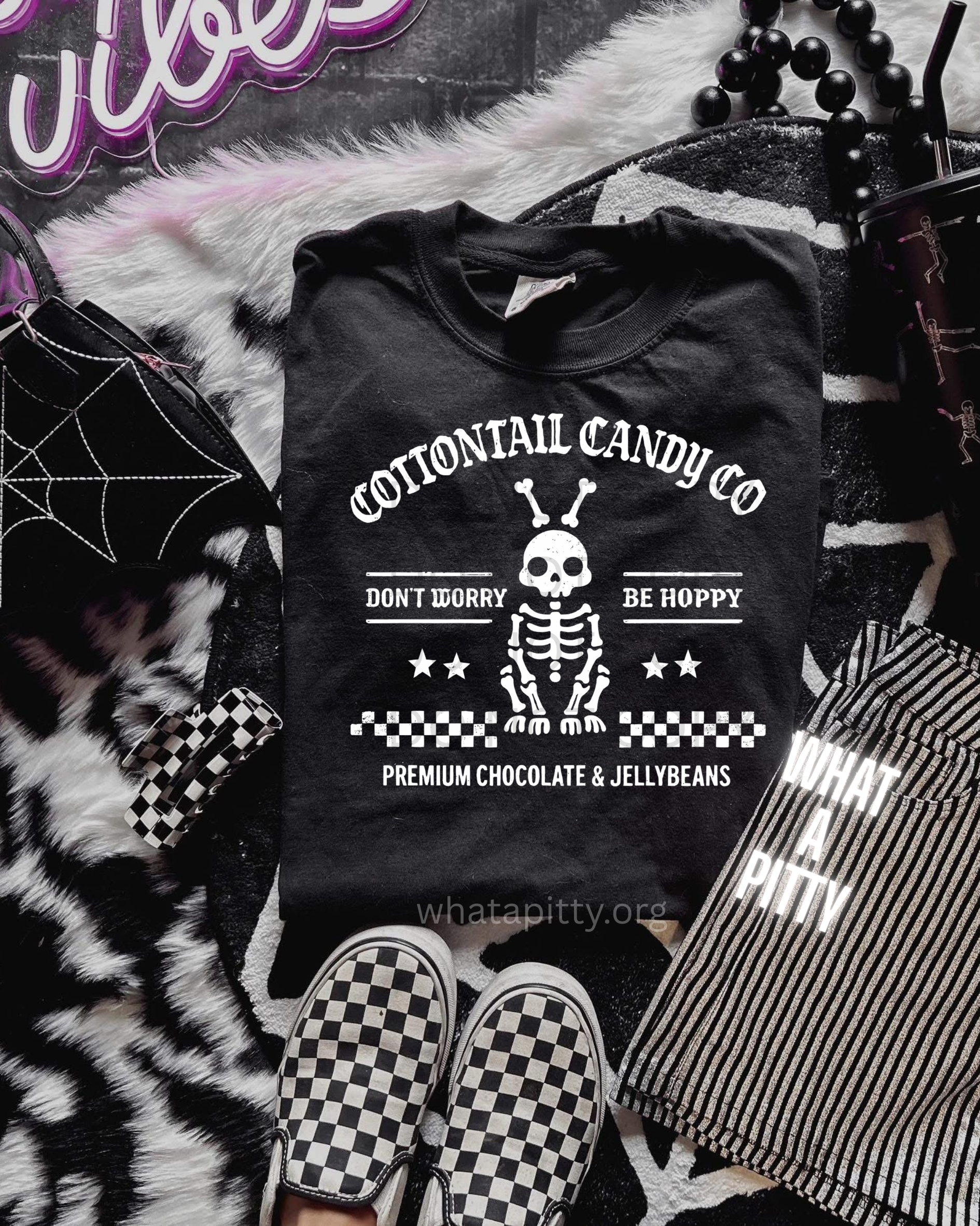 Hop into happiness with our cheerful skeleton bunny design! This playful tee features a fun bunny skeleton in crisp white ink that's sure to bring smiles. Perfect for anyone who loves a little spooky-cute charm mixed with good vibes. Whether you're a fan of quirky fashion or just need a daily reminder to embrace the lighter side of life, this tee delivers personality with every wear. Comfort meets whimsy in one adorable package.