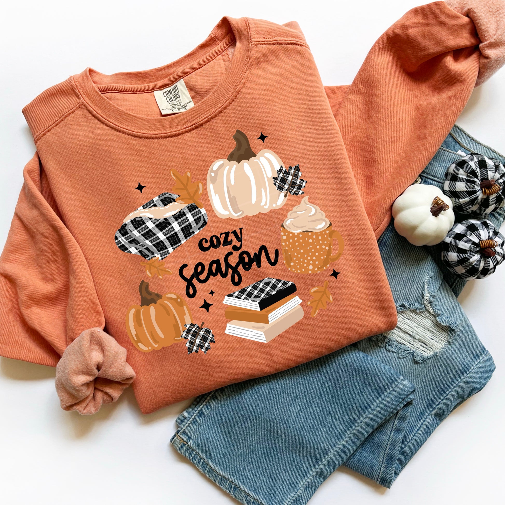 Snuggle up in the Cozy Season book tee, where pumpkins, soft blankets, and your favorite books come together for the ultimate autumn comfort. This playful design captures the warmth and charm of fall, making it perfect for cozy days spent reading and relaxing.