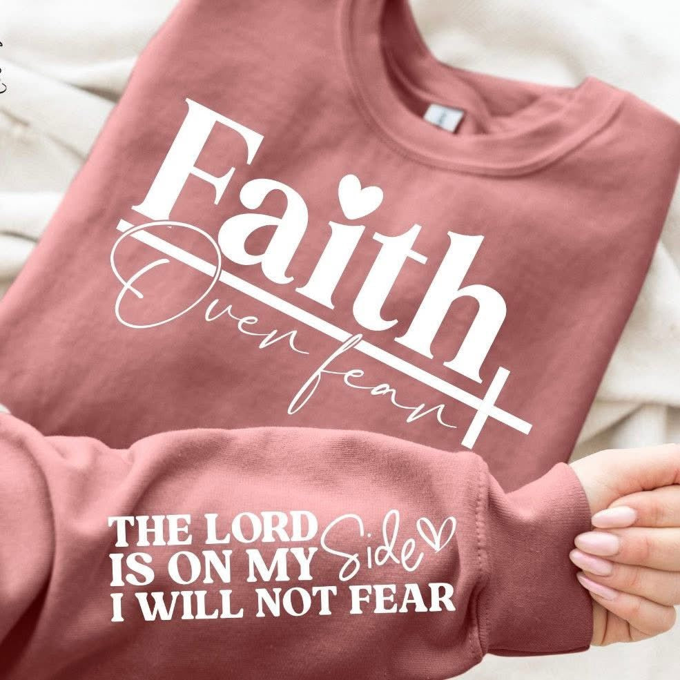 Faith Over Fear sweatshirt with sleeve designs