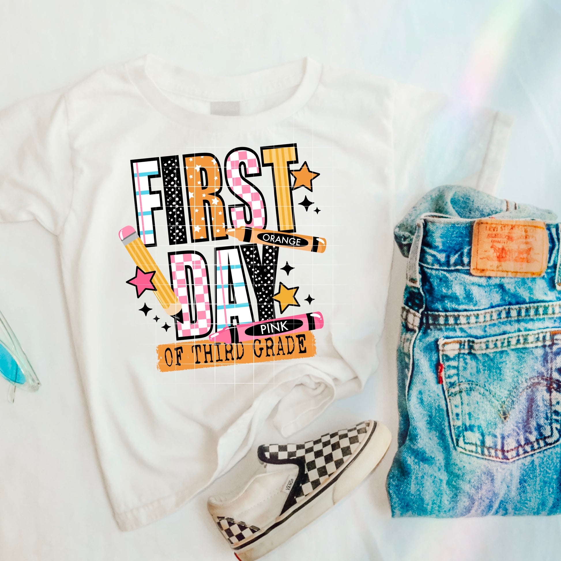 Get ready to celebrate the first day of 3rd GRADE in style with this playful pink checkered tee! Featuring fun school-inspired colors and a cheerful design, it’s perfect for little learners who love crayons and pencils. Comfortable and vibrant, this tee makes the start of the school year extra special and full of joy.