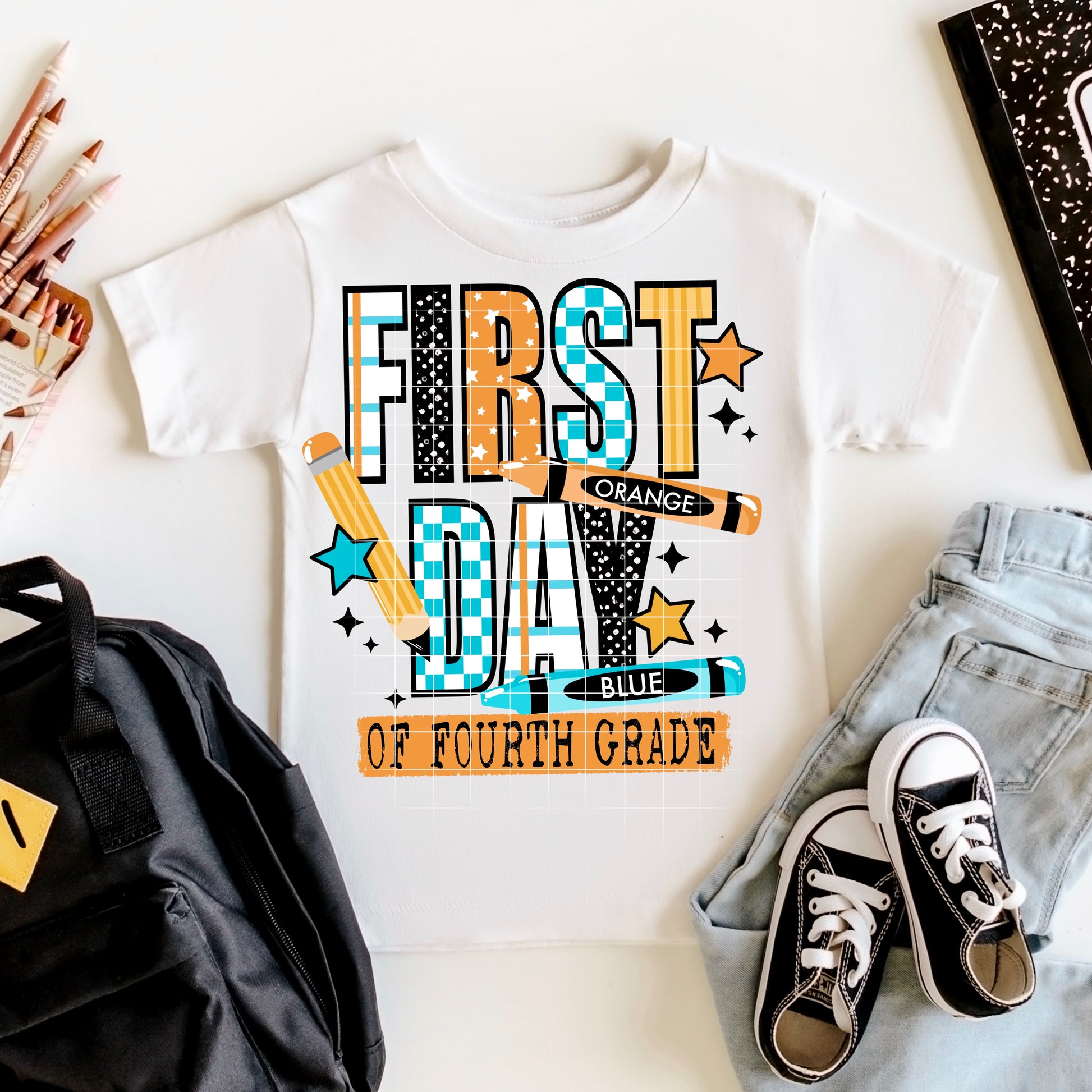 Get ready to celebrate the first day of 4th grade in style with this playful blue checkered tee! Featuring fun school-inspired colors and a cheerful design, it’s perfect for little learners who love crayons and pencils. Comfortable and vibrant, this tee makes the start of the school year extra special and full of joy.