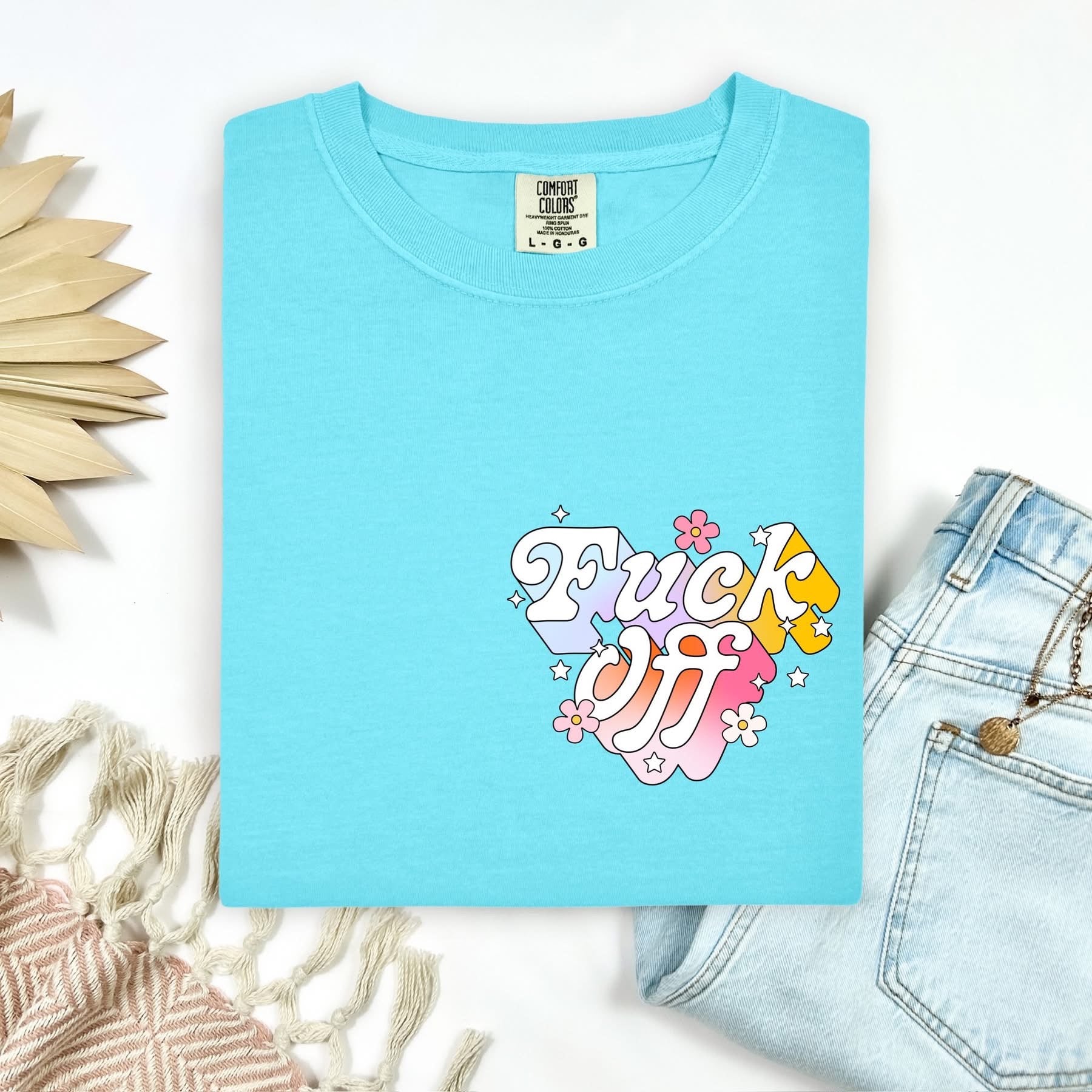 This playful tee features a bold, colorful print right on the pocket area, adding a fun pop of attitude to your casual look. Perfect for those who like to keep it cheeky and stylish at the same time. Comfortable and eye-catching, it’s a great way to express yourself with a wink.