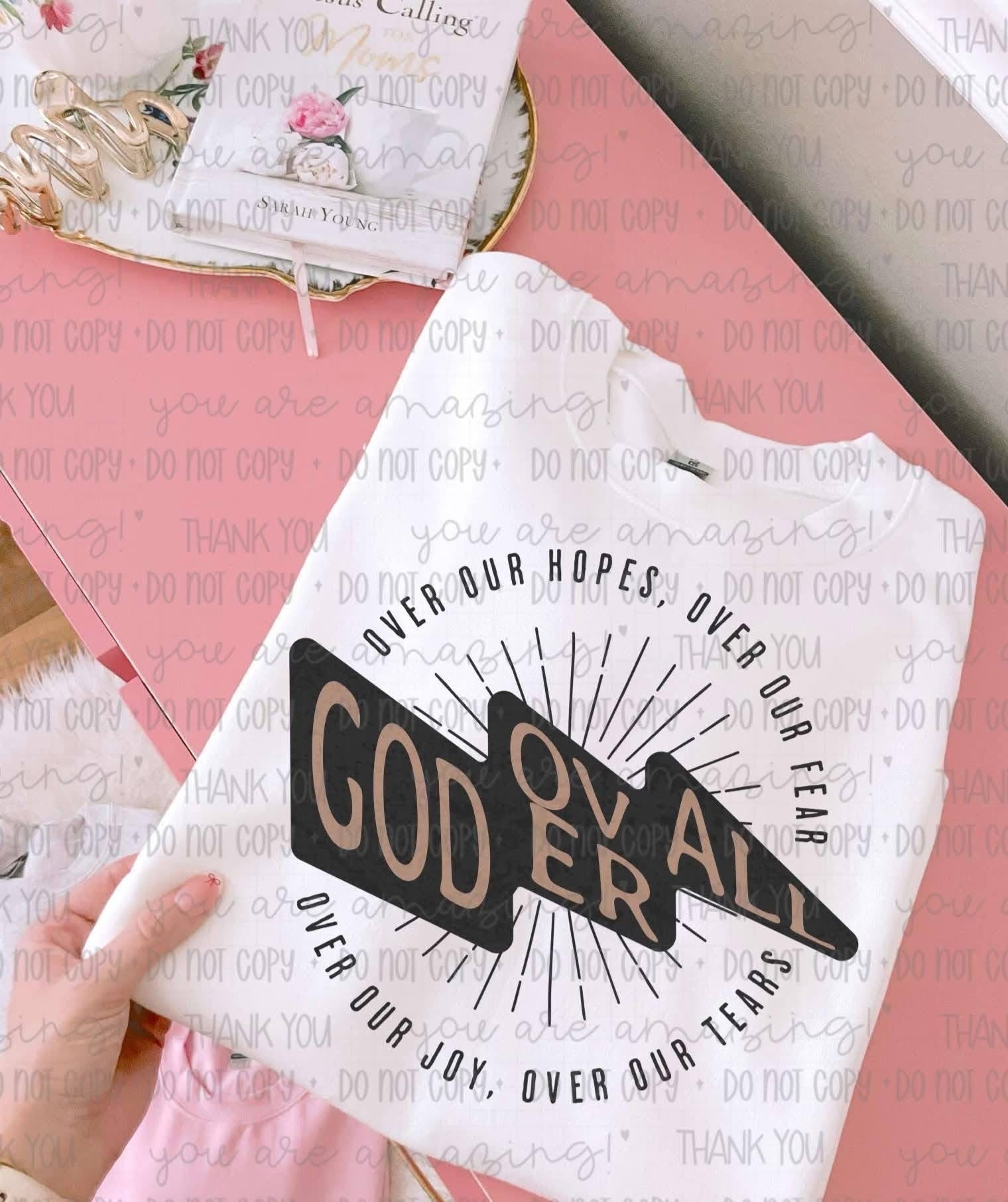 Celebrate your faith with the God Over All tee, a playful reminder to keep what matters most at the center of your life. Comfortable and stylish, this tee lets you wear your belief with joy and confidence every day.