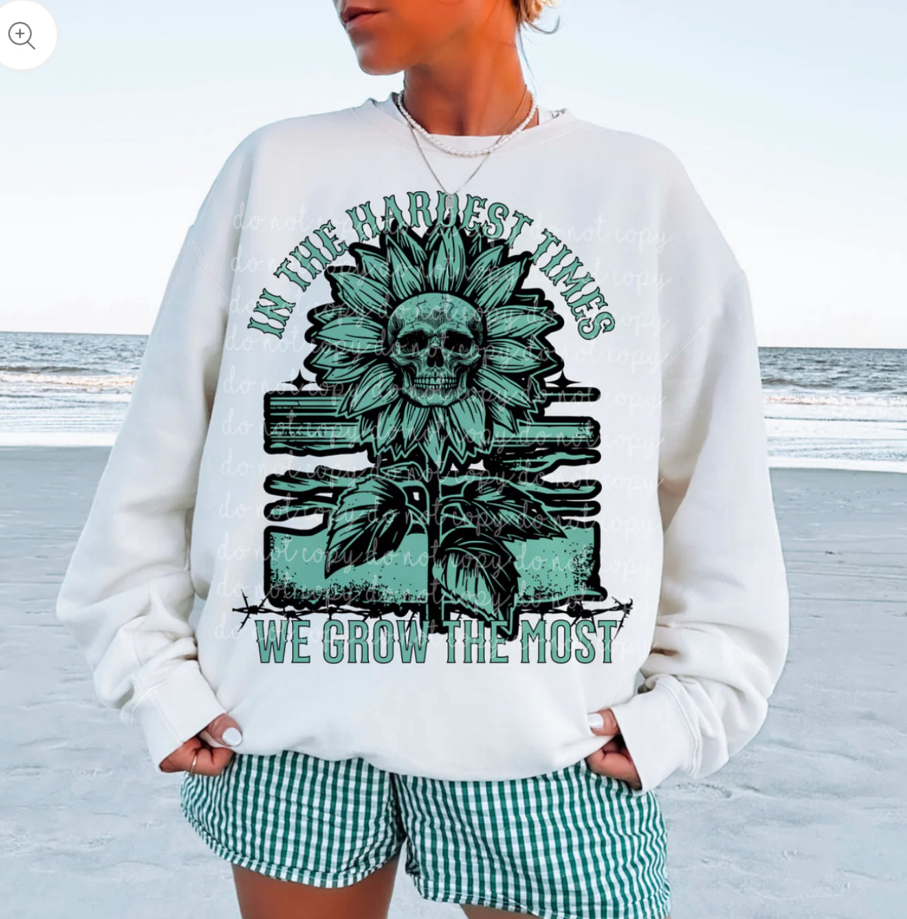 Rock this inspiring tee that blends edgy symbolism with an uplifting message. Featuring a striking sunflower with a skull at its heart, this design celebrates resilience and personal growth through life's toughest moments. It's a bold reminder that beauty and strength emerge from adversity. Perfect for anyone who's overcome challenges and wants to wear their journey with style and a touch of playful attitude. Let your shirt tell your story.