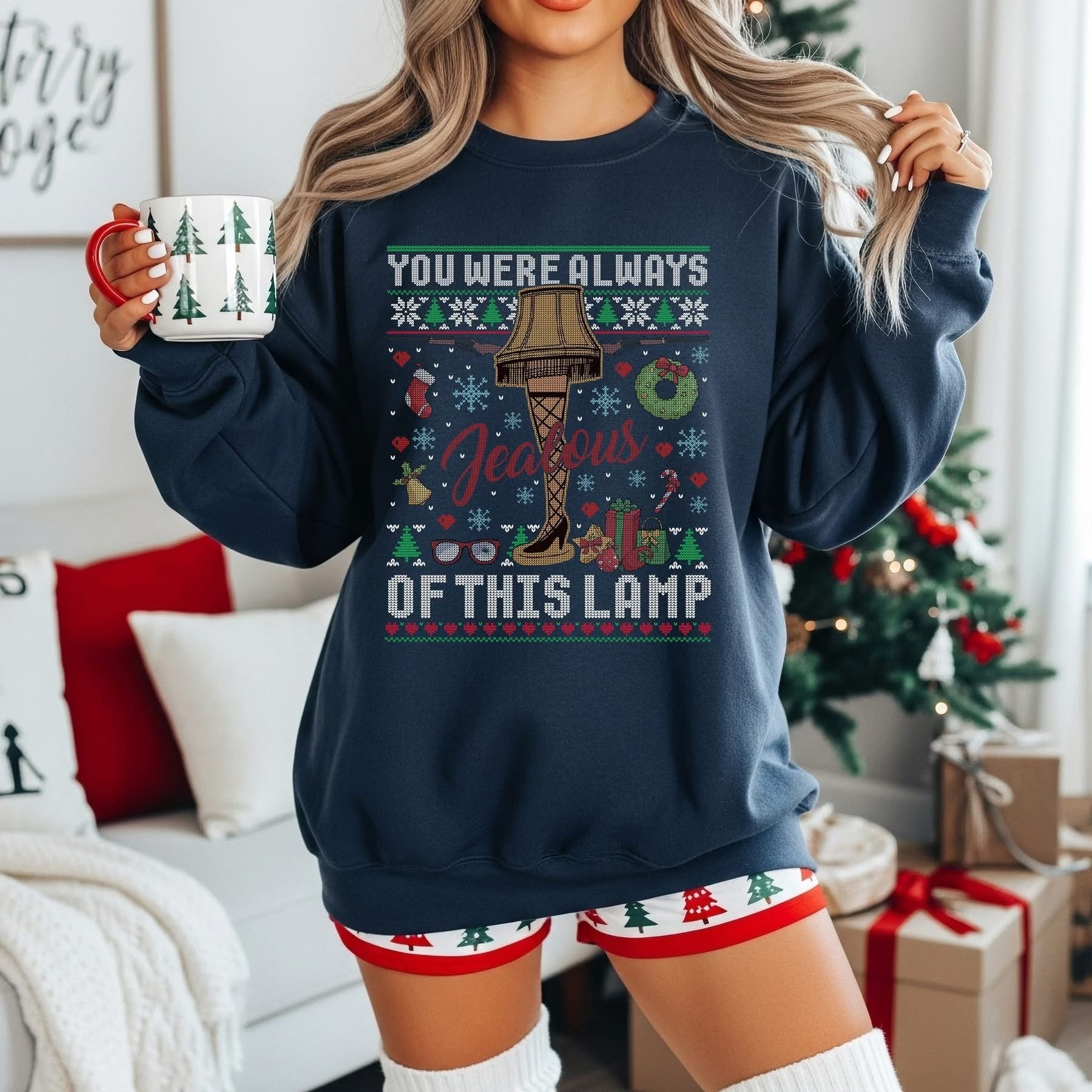 Channel your inner comedy legend with this hilarious tee that pays homage to one of cinema's most iconic props. Featuring the legendary leg lamp design with a cheeky "You were always jealous of this lamp" message, this sweater-look shirt is pure comedic gold. Perfect for holiday gatherings, movie nights, or anyone who appreciates a good laugh. Cozy, quirky, and guaranteed to get smiles—because sometimes the best gifts are the ones that make you laugh.