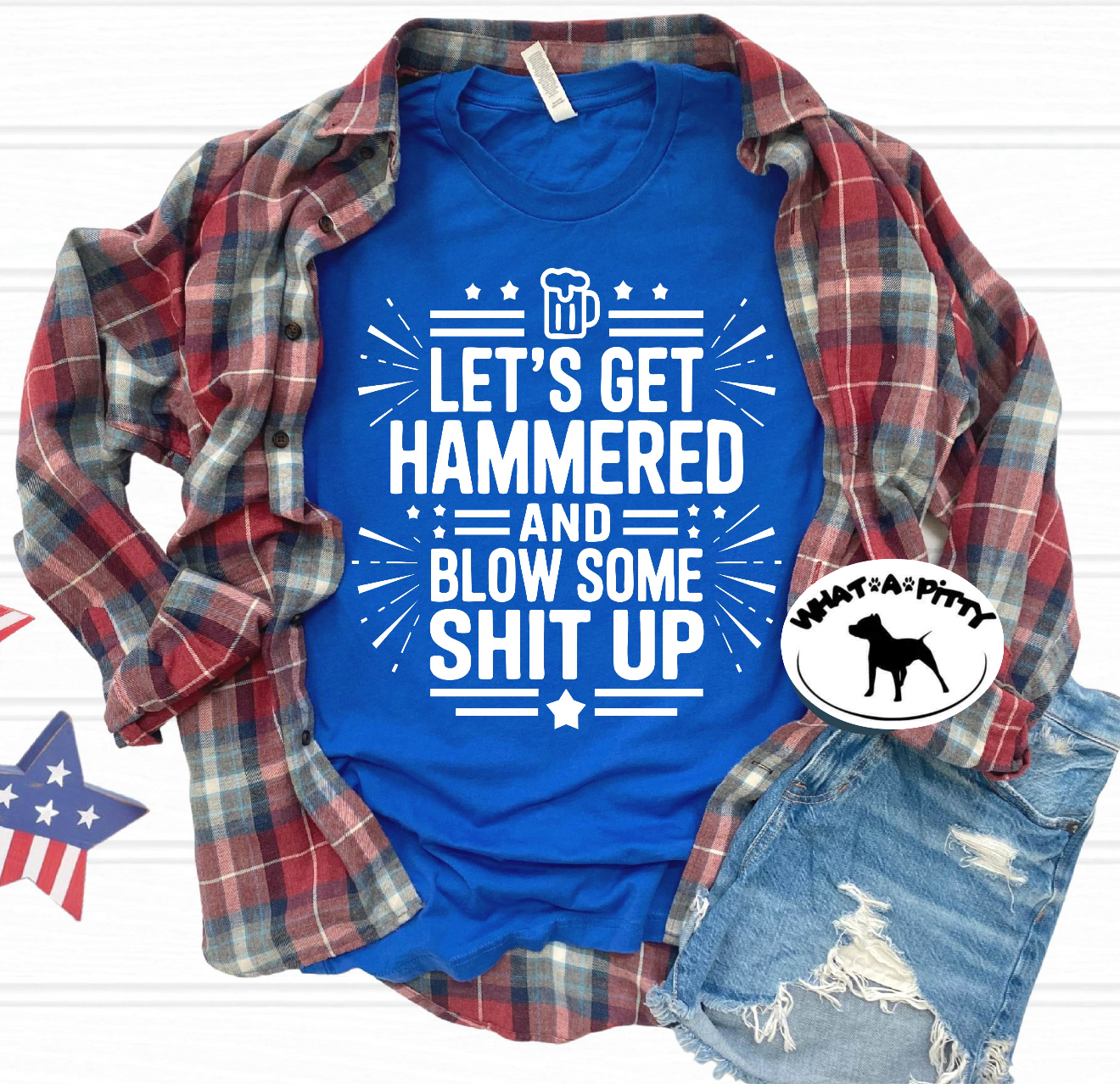 Get ready to party with the "Let's Get Hammered and Blow Some Shit Up" tee! Perfect for those who love a good drink and a little fireworks fun, this playful shirt captures the spirit of celebration with a cheeky twist. Wear it to your next gathering and let everyone know you're all about good times and explosive fun—because really, what could go wrong?