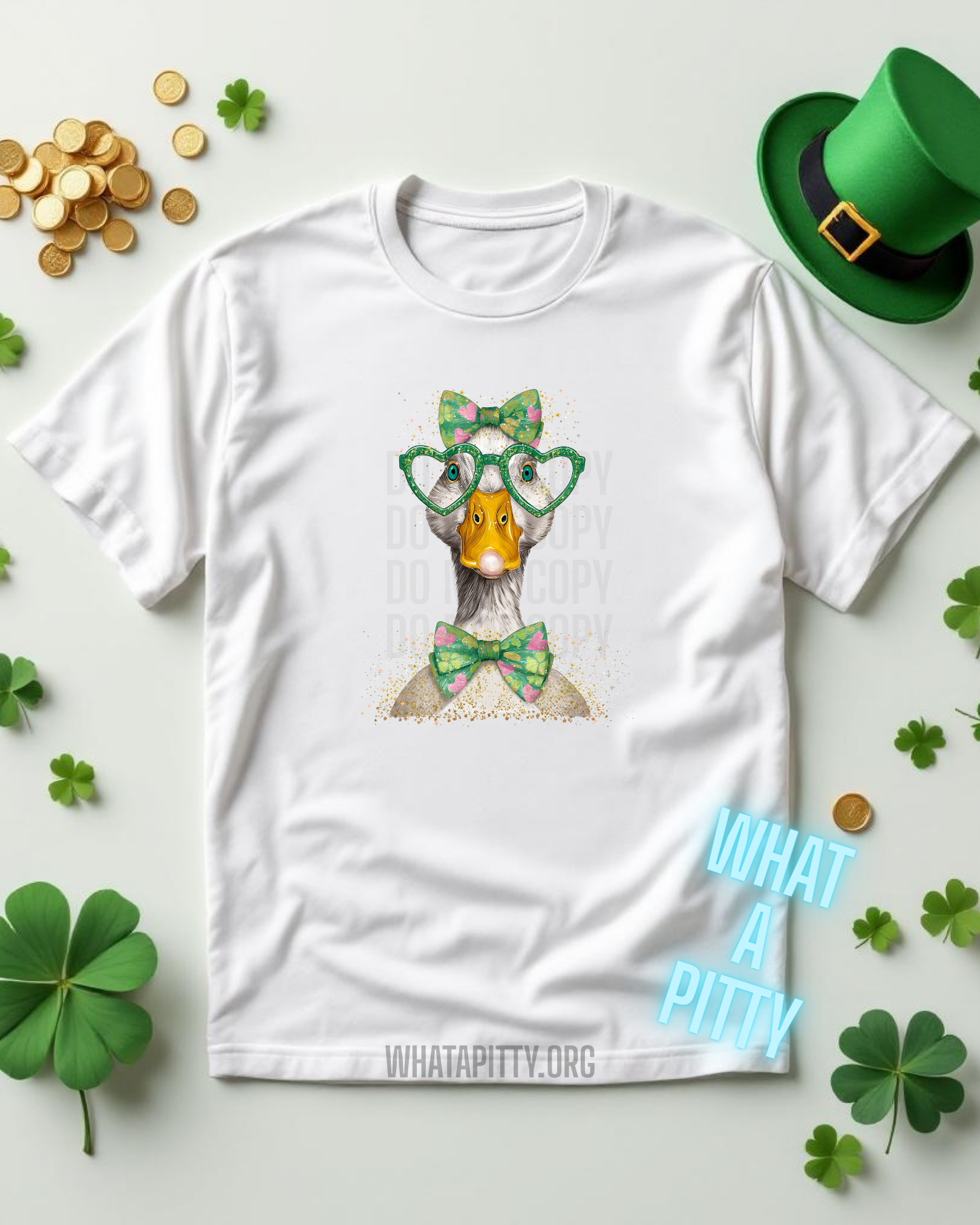 Meet your new favorite tee! This delightful Lucky Duck design showcases an adorable white goose decked out in festive green heart glasses and a charming green bow tie. Perfect for spreading joy and whimsy, this playful piece captures all the fun and cheer of the season. Whether you're a waterfowl fan or just love quirky, feel-good fashion, this tee brings instant personality and a smile to any wardrobe. Get lucky in style!