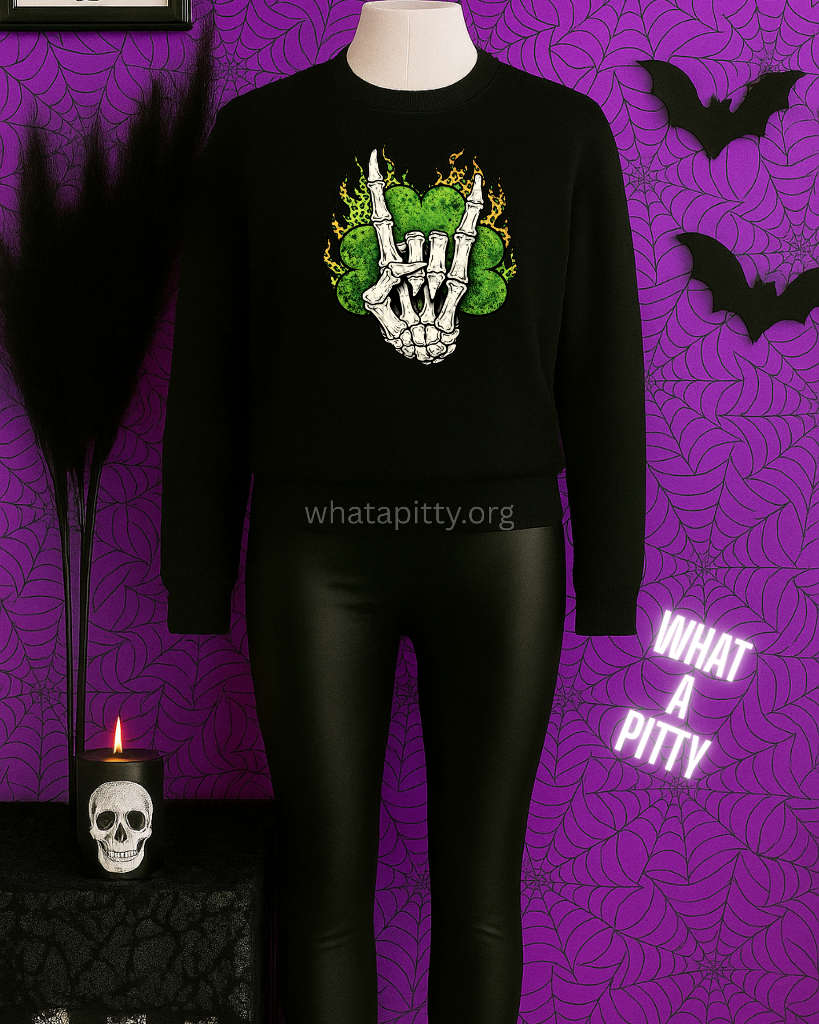 Turn up the heat with the Shamrock Skellie Rocker tee—where St. Patrick's Day meets rock and roll rebellion. This bold design showcases a blazing shamrock engulfed in flames, paired with a skeleton hand throwing the ultimate rock-on gesture. It's the perfect shirt for those who celebrate the holiday with attitude and attitude with style. Whether you're heading to a parade or a concert, this tee delivers festive vibes with an edgy, rebellious twist that refuses to play it safe.